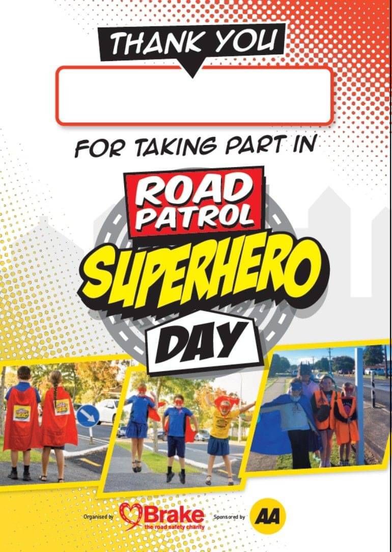 Thank you for signing up to take part in Road Patrol Superhero Day, kindly sponsored by the AA. Below you will find some additional resources you can use to help promote the day and recognise your road patrollers. Simply click on the button underneath each resource you want to download.